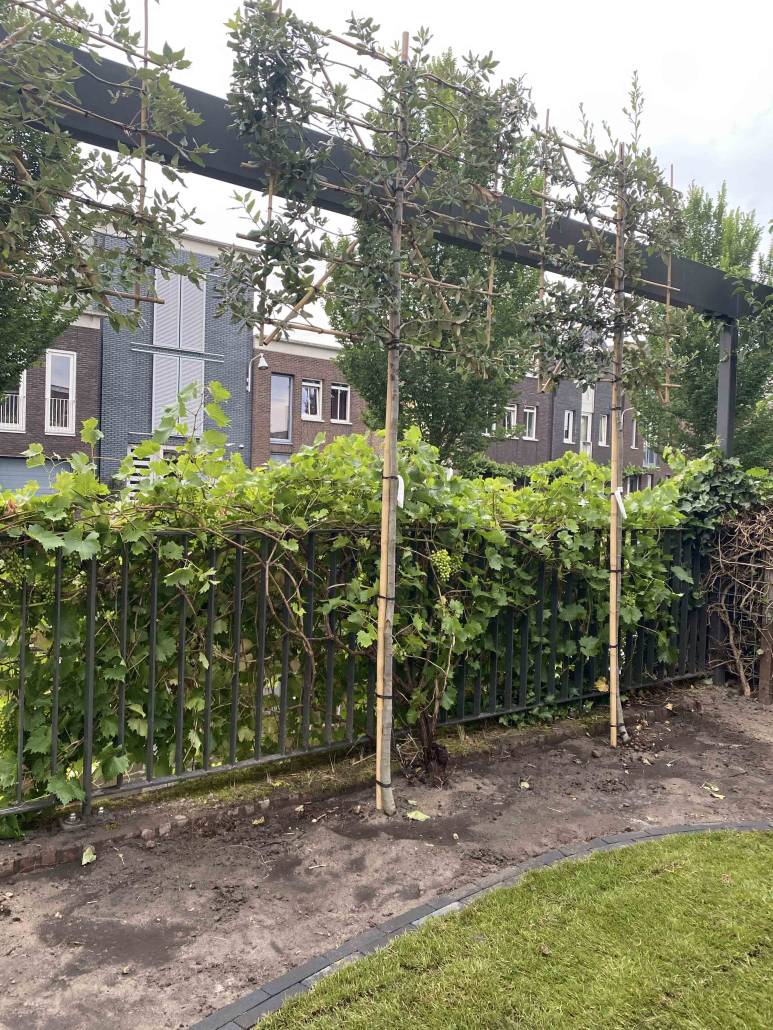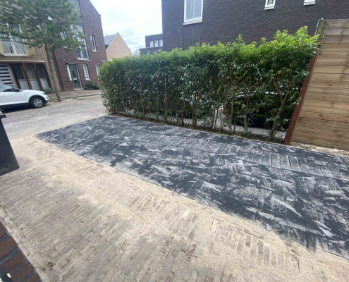 We vernieuwden de bestrating, legden nieuwe tegels en voegden nieuwe graszoden en wintergroene steeneiken toe. Daarnaast hebben we ook de hagen en klimop gesnoeid, zodat ze weer keurig kunnen teruggroeien.