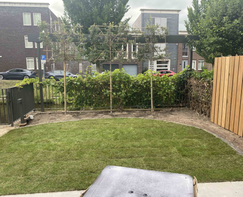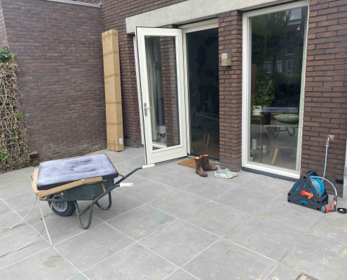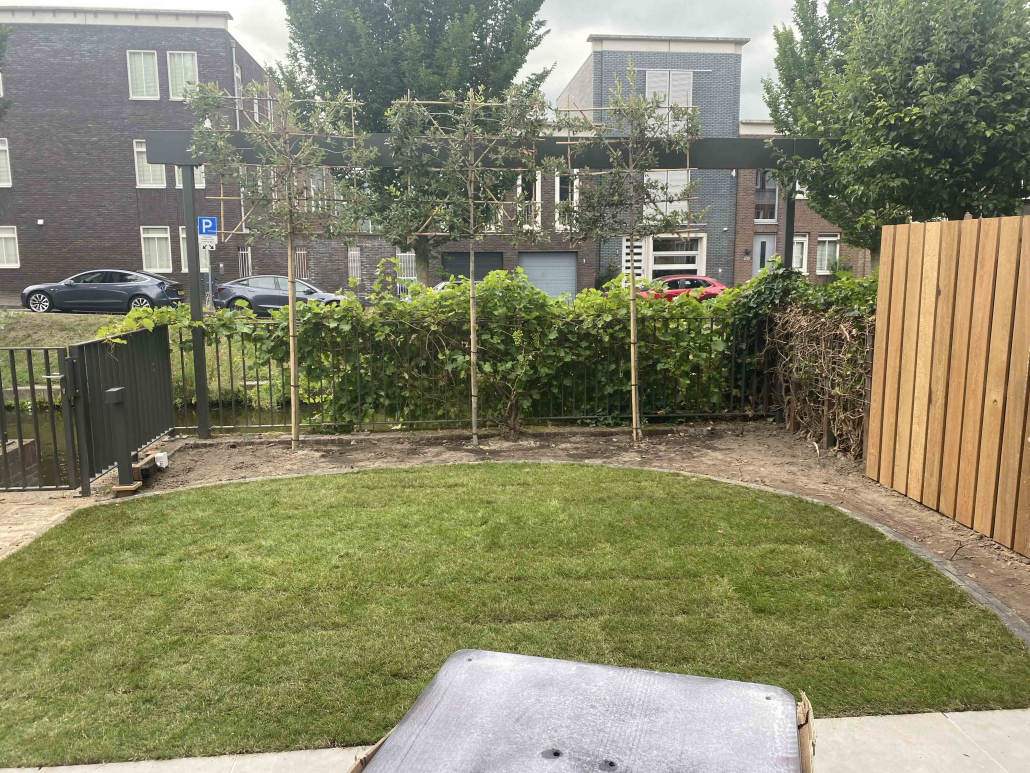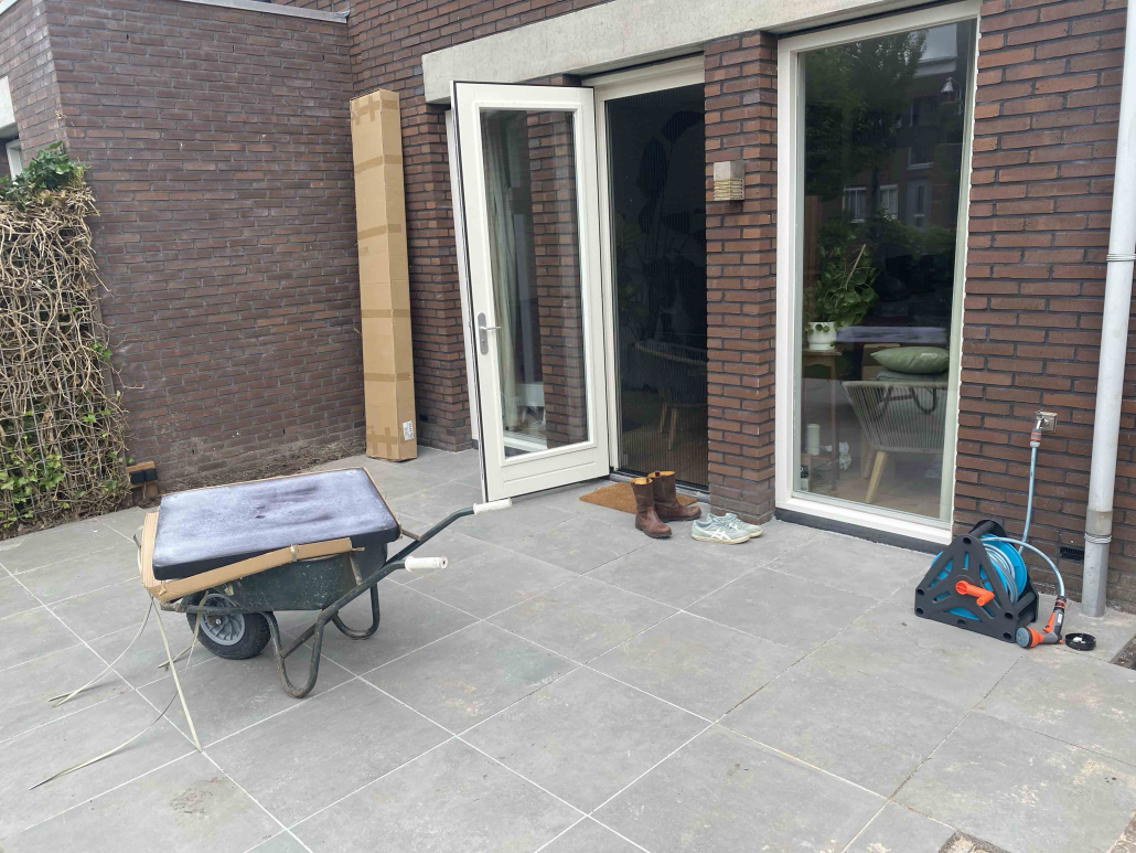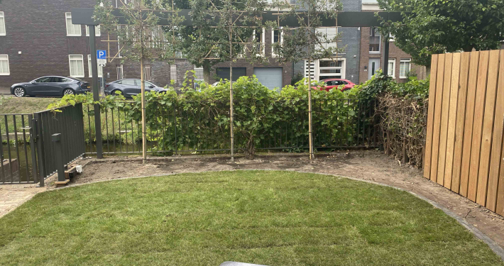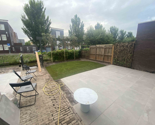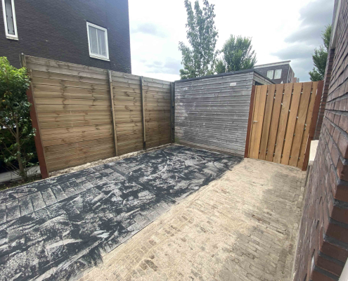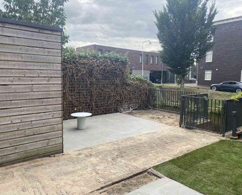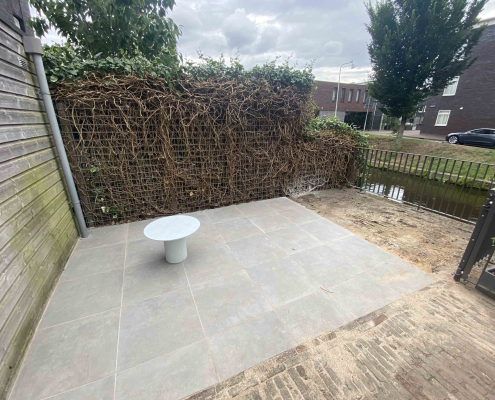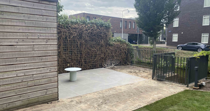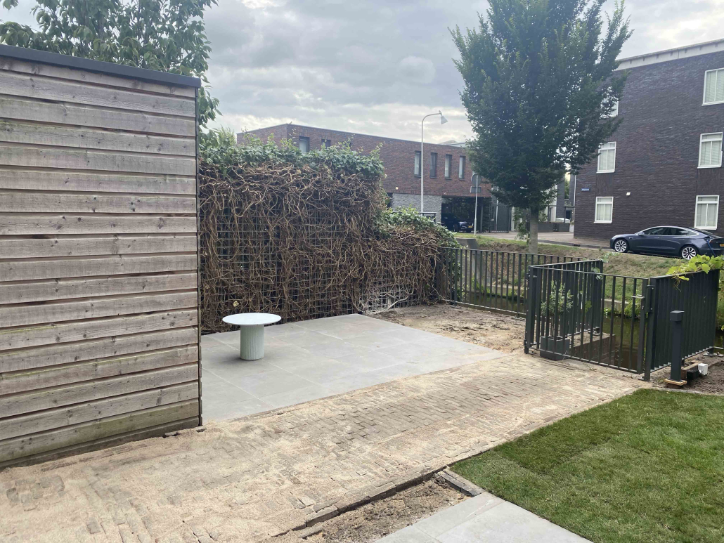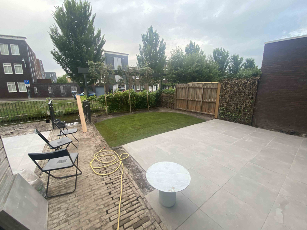 Langs de gracht in Amersfoort hebben we dit project aangepakt door niet alleen de hele tuin opnieuw te ontwerpen en te realiseren, maar ook door het schuurtje te verplaatsen, waardoor een extra parkeerplaats ontstond.