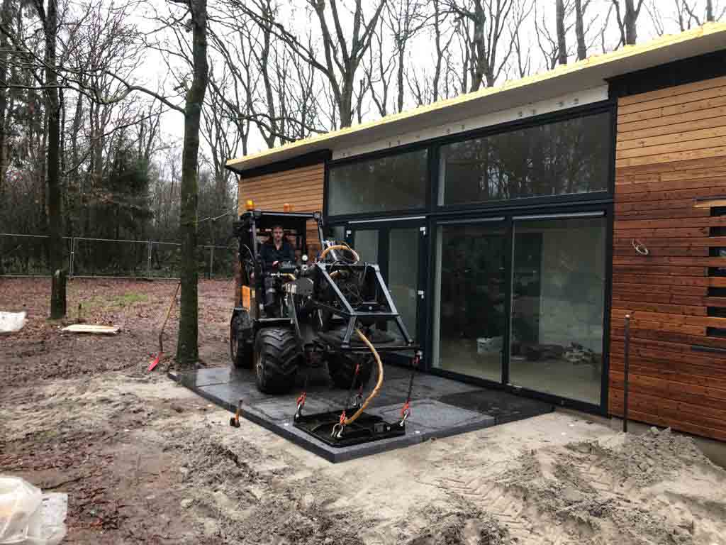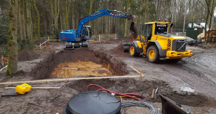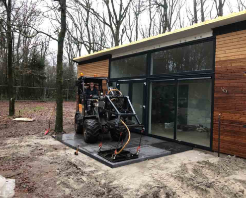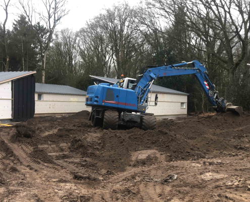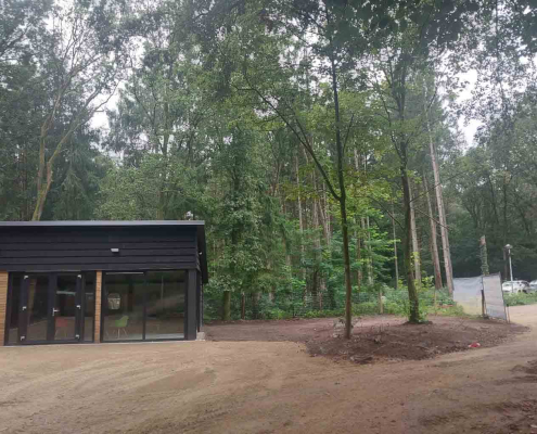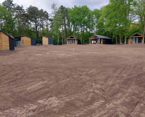 Bij vakantiepark Gooische Goed in Blaricum kregen we de kans om het complete park te ontwerpen en aan te leggen, van de tuinen bij de vakantiehuisjes tot aan de avontuurlijke speelplekken voor de kinderen. Ook hebben we parkeerplekken verzorgd en tegels aangelegd.