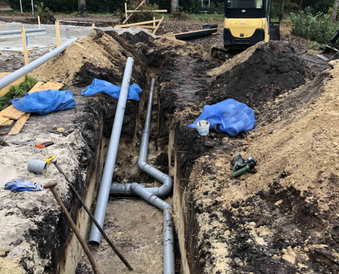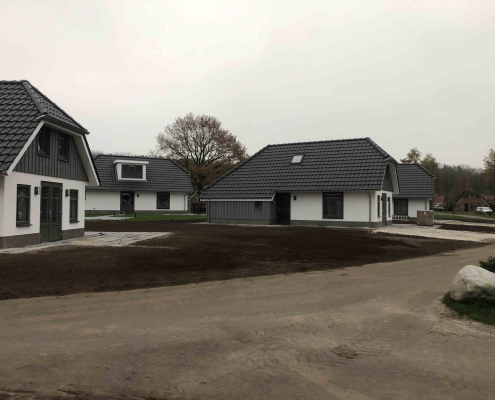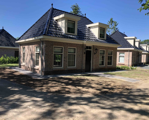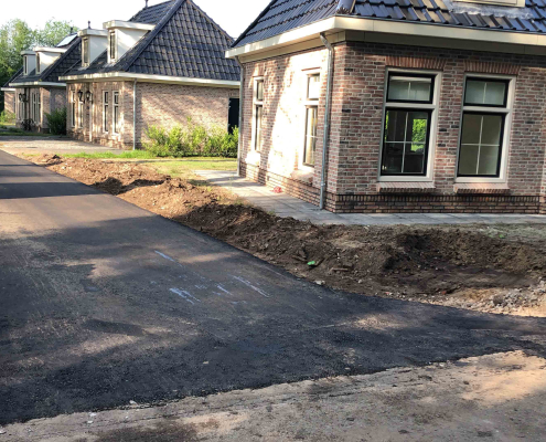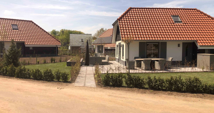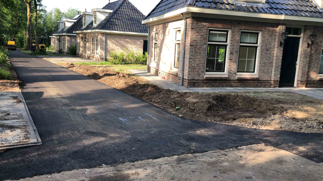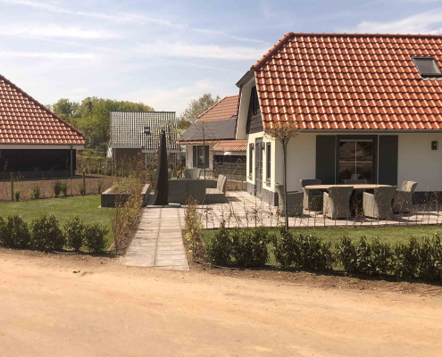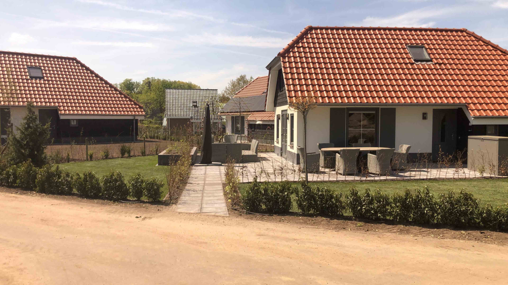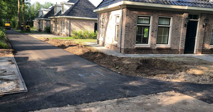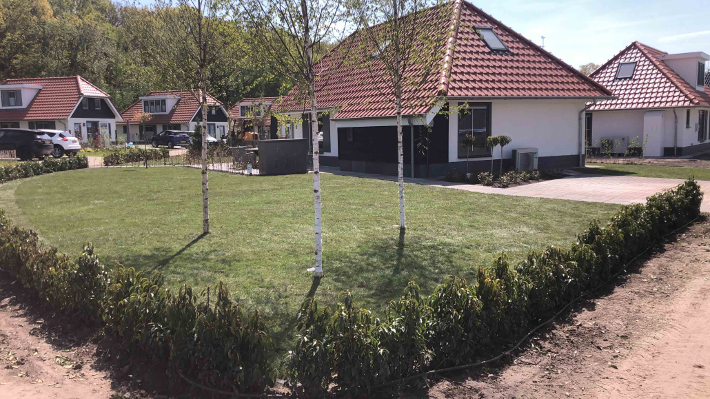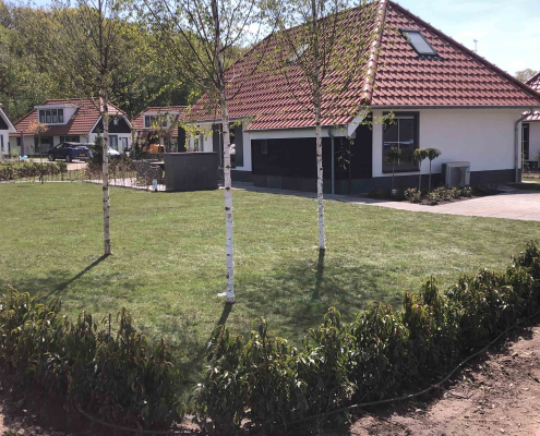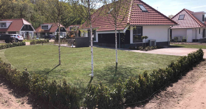 Op dit bungalowpark hebben we niet alleen de tuinen rondom de huisjes aangelegd, maar ook de wegen en het groen verzorgd. Daarnaast hebben we ook voor de afvoer van het regenwater gezorgd en drainages aangelegd.