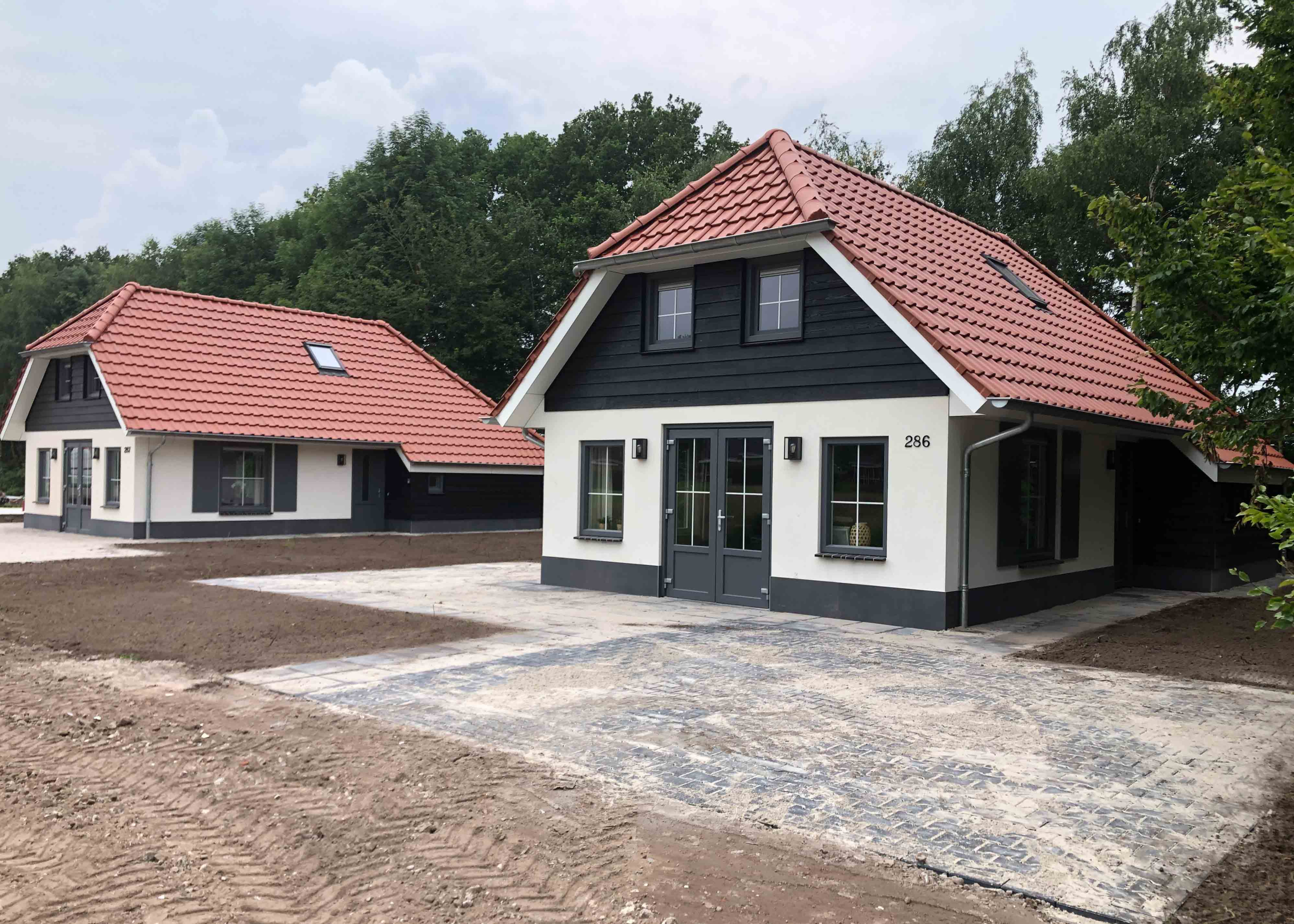 We hebben het hele terrein van begin tot eind vormgegeven en ingericht, zodat gasten kunnen genieten van een compleet aangelegde omgeving, van hun eigen tuinen tot de paden.