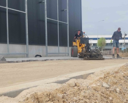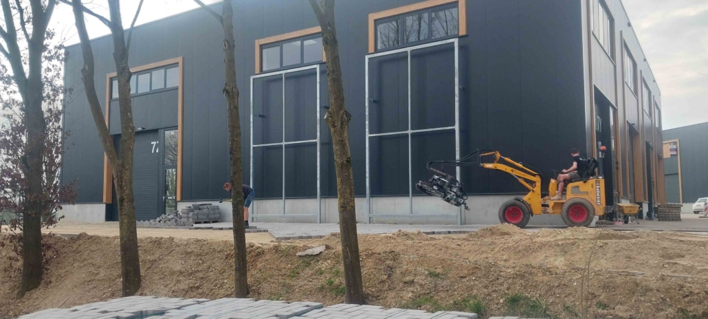 Voor een bedrijfspand hebben wij recent de bestrating aan de zijkant van het gebouw aangelegd. Dit project bestond uit het voorbereiden van de ondergrond, het aanbrengen van een stabiele fundering en het strak leggen van de bestrating. Het resultaat is een nette, duurzame en onderhoudsvriendelijke verharding die perfect aansluit bij de uitstraling van het pand.